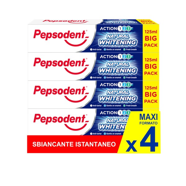 Pepsodent Toothpaste 125 ml Natural Whitening | Anti-Tartar | Big Pack (4 x 125 ml Pack)