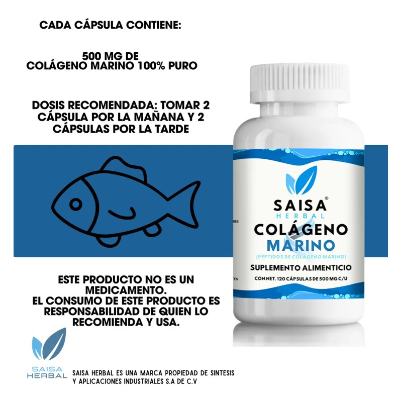 Péptidos De Colágeno Marino Puro 120 Cápsulas Saisa Herbal