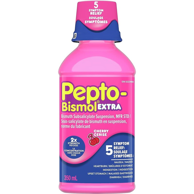 Pepto Bismol Extra Strength Liquid, 2X Concentrated Formula, Upset Stomach Relief, Diarrhea Relief, Heartburn, Nausea, Indigestion, Upset Stomach, Cherry Flavour, 12oz /350mL