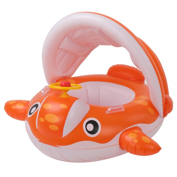 Peradix Baby Swimming Ring with Removable Sun Canopy, for 9-36 Months, Float with Sun Protection, Orange