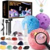 Perbabe Excavation Set for Children, Necklace Making with Natural Gemstones and Crystals Fossils Excavation Set Children STEM Mineralogy Toy Planets Gift for Children from 6 7 8 9 10+