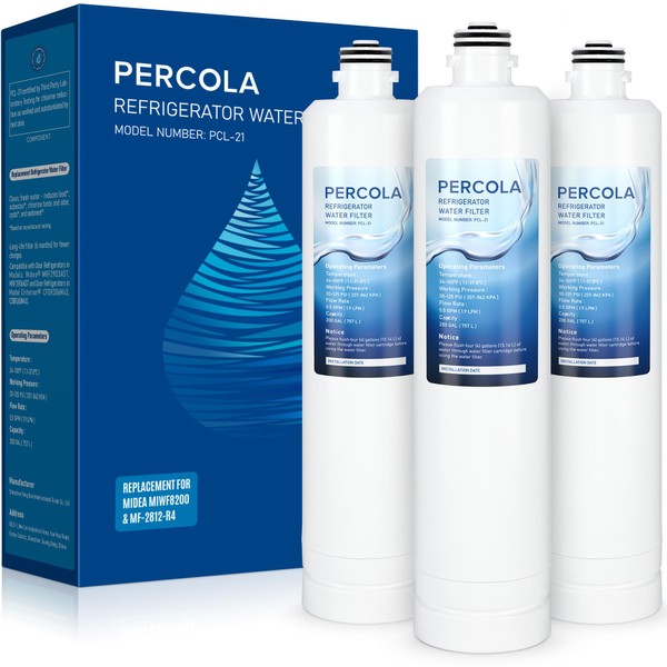 PERCOLA MIWF8200 Water Filter, Compatible with Midea® MIWF8200/MF-2812-R4 Water Filter, Midea® MRF29D3AST, MRF29D6AST Refrigerator Models (3 Pack)
