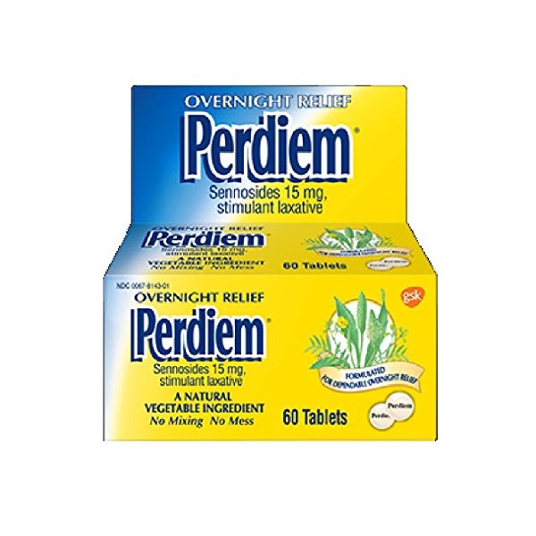 Perdiem Sennosides Stimulant Laxative Pills, Overnight Relief, 60-Count Bottles (Pack of 2) by Perdiem