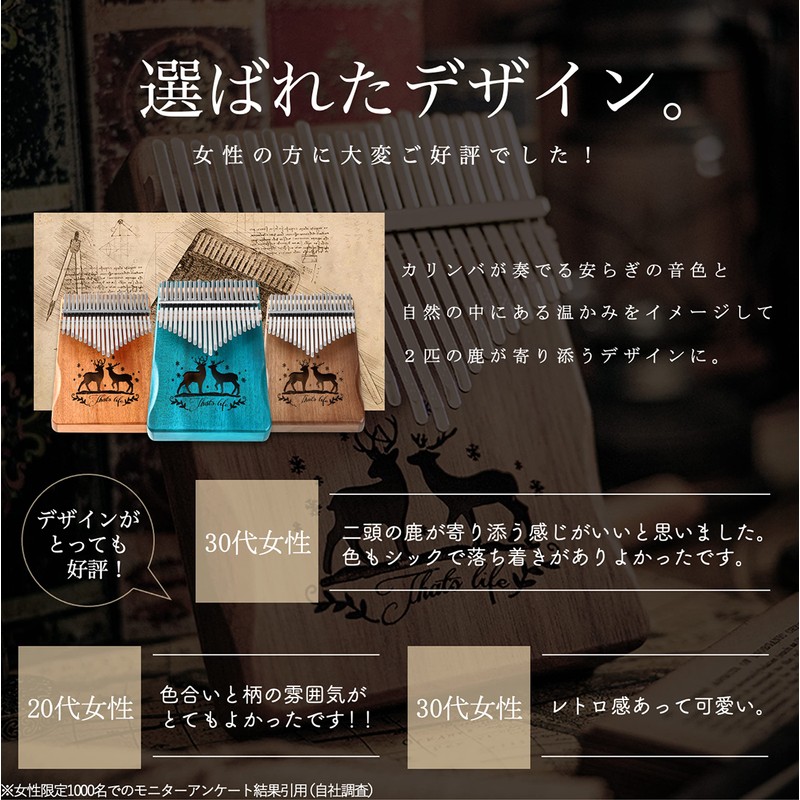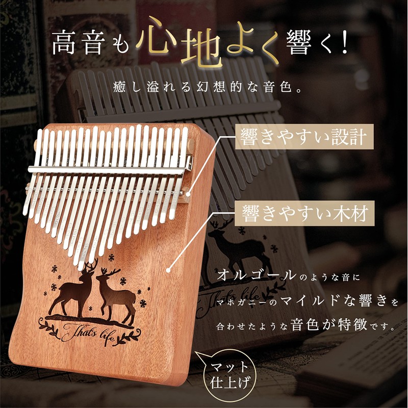Perdin Kalimba Beginner Set, 21 Keys, Tuned, Japanese, Includes Sheet Musical Score, Introduction Book, Case, Engraved, Musical Instrument, For Beginners, Mahogany (Organic Brown)
