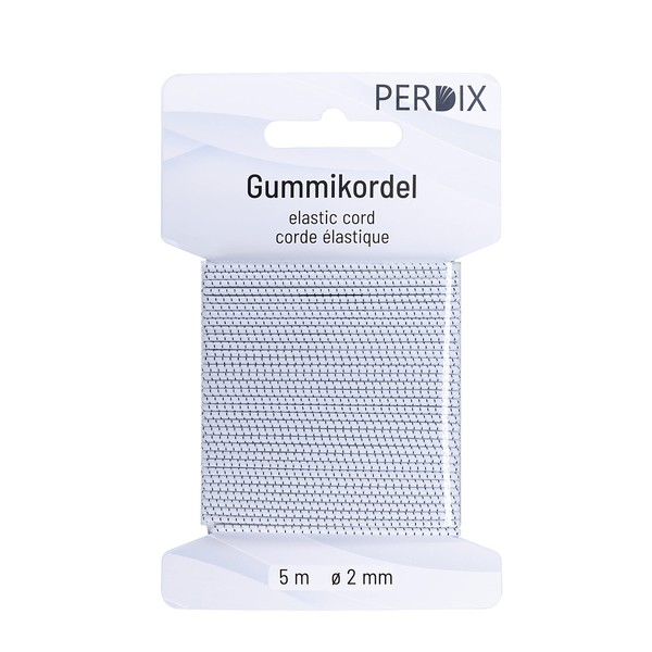 perdix Rubber Cord, Rubber Cord 2 mm, 5 m Black - White, Elastic Band for Tent, Backpack, Garden, Jewellery, Cord, Hat Rubber, Elastic Band