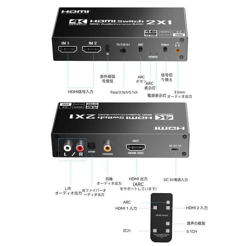 - 4K 60HZ 2X1 HDMI Switcher with Audio Extractor
