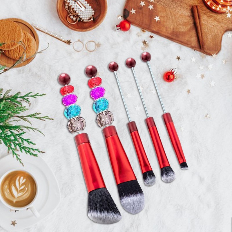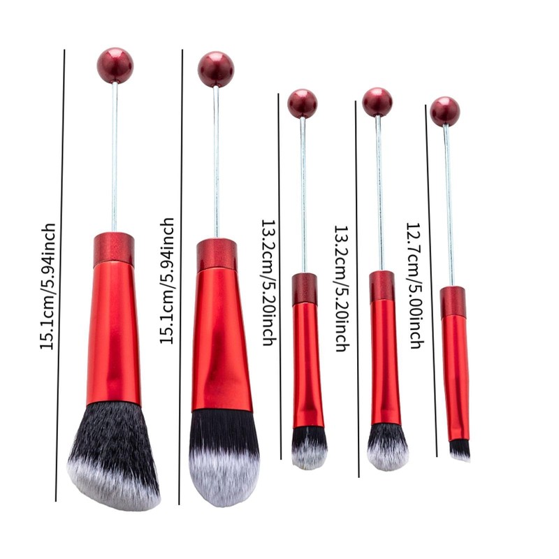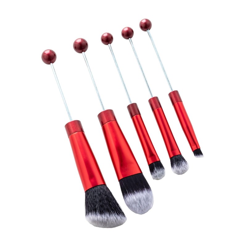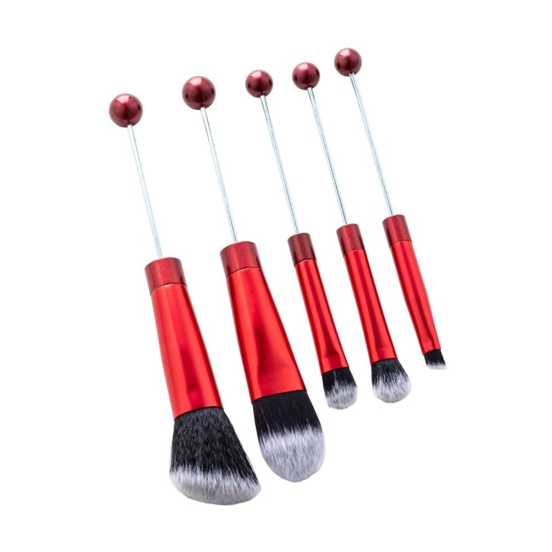 perfeclan 5-teiliger Lidschattenpinsel mit Perlen, Kosmetikpinsel, multifunktionaler abgewinkelter Pinsel, Rougepinsel mit weicher Kunstfaser für die Schwester, Rot