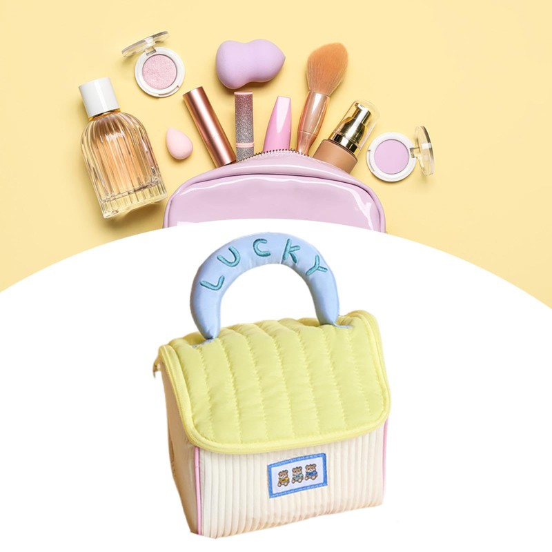 • 【Feature】: This makeup bag features lively colors and a playful design, making it a stylish and eye catching accessory for your travels