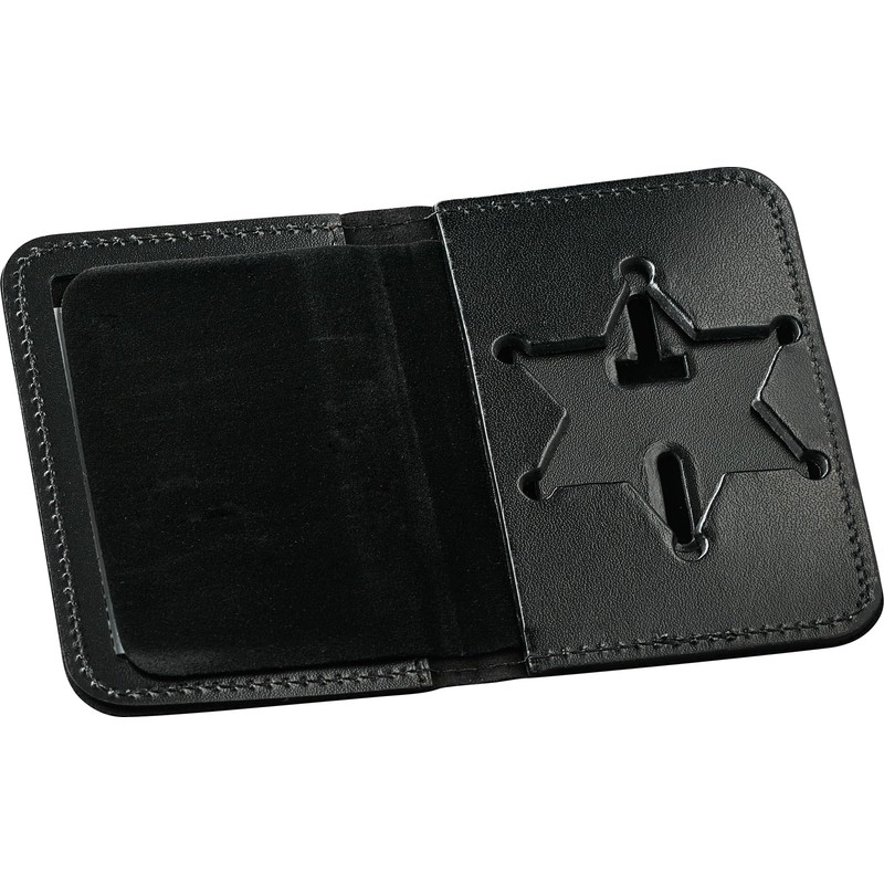 - Sherif bi fold wallet badge holder has a police badge 5 point star cutout size of 2.95 in height, 2.55 in wide and ID Window Size: 2-5/8 x 4 inches
