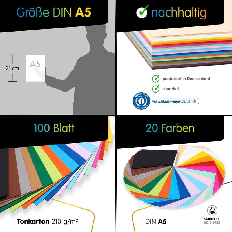 - THICK PROPERTIES - Extra strong 210 g/m², especially high colour intensity, no bleeding since fully solid coloured, no fading thanks to excellent light resistance, Made in Germany, Blue Angel certified
