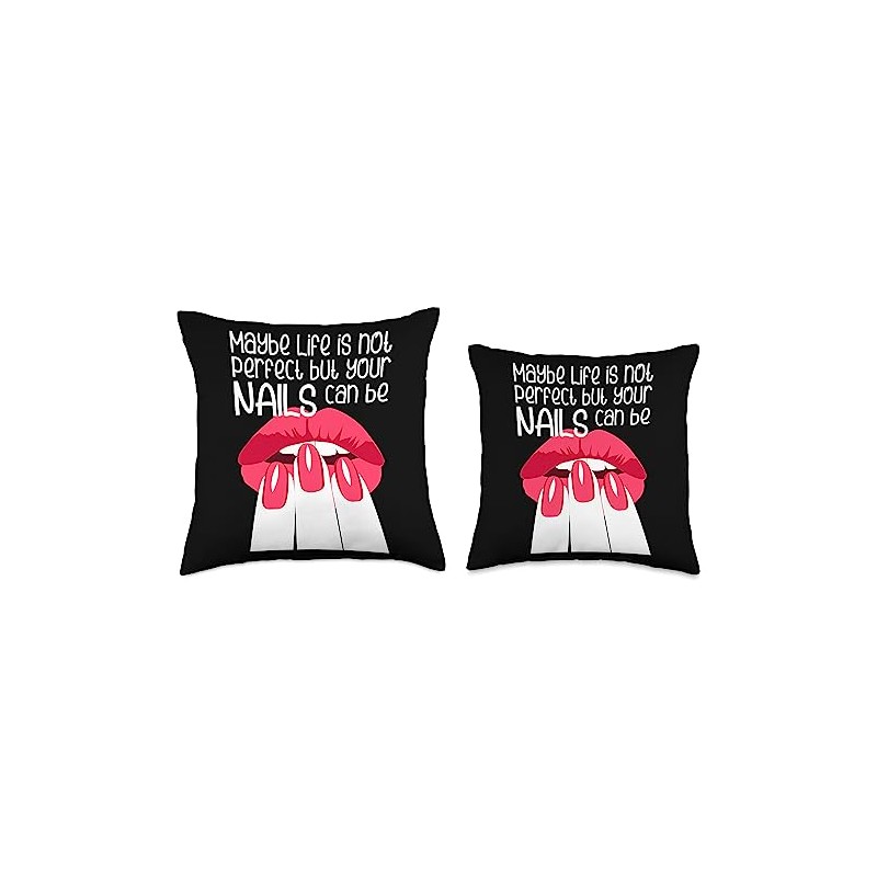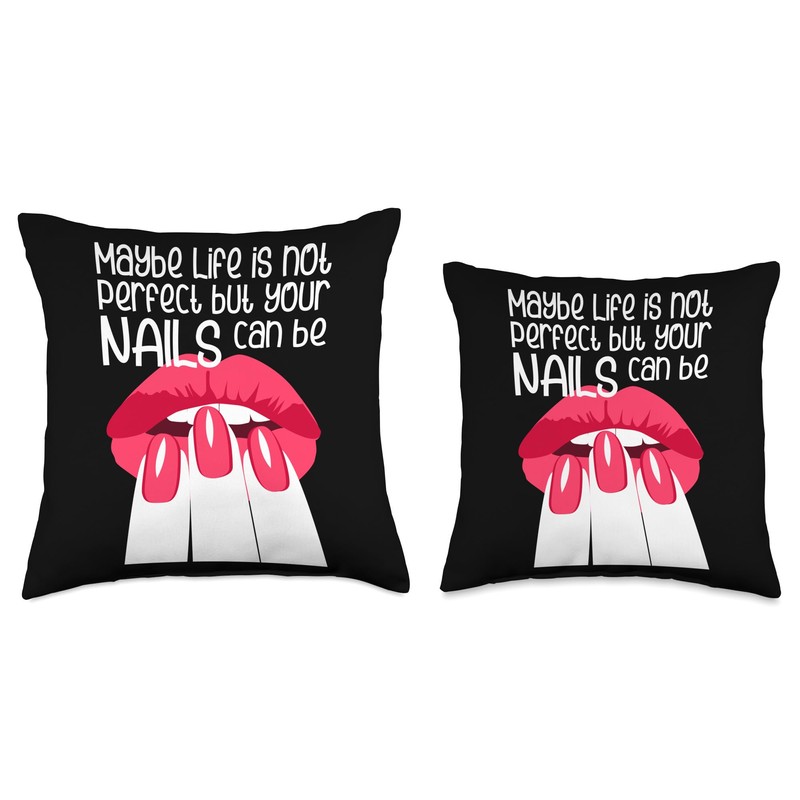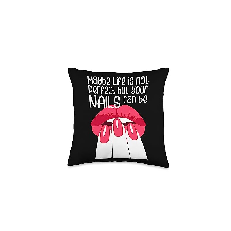 Perfect Nails Life Jokes Acrylicnails Nail Studio Maybe Life is not Perfect but Your Nails can be Throw Pillow, 16x16, Multicolor