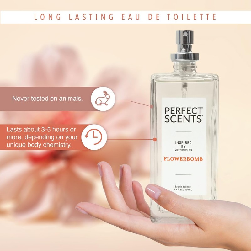 Perfect Scents Fragrances | Inspired by V&R’s Flowerbomb | Women’s Eau de ToileƩe | Vegan, Paraben, Phthalate Free | Never Tested on Animals | 3.4 Fl Oz