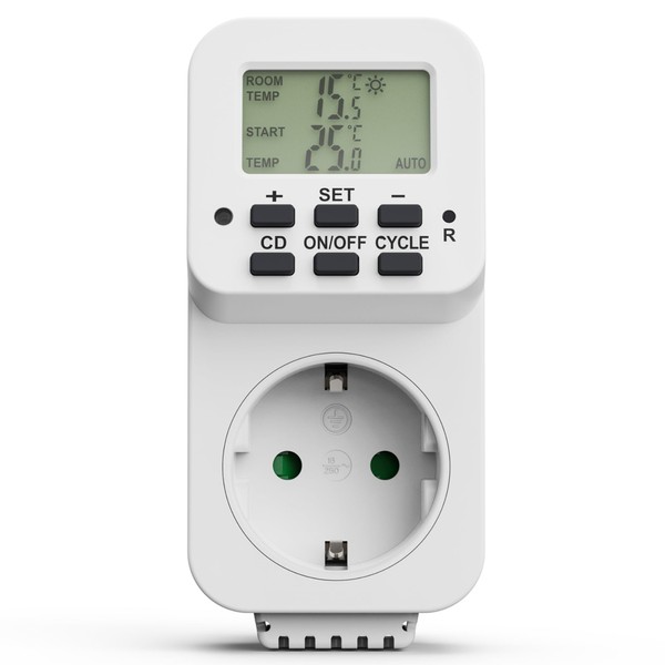 - Precise temperature control: our digital thermostat for the socket allows impressively accurate regulation of the room temperature in the range of 0℃ to 40℃ (at an ambient temperature of -10℃ to 40℃). Ideal for heating, fan, frost guard and more (up to max. 3600 W)