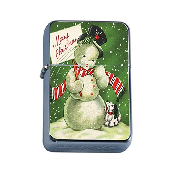 Perfection In Style Silver Flip Top Oil Lighter Vintage Christmas Design 008