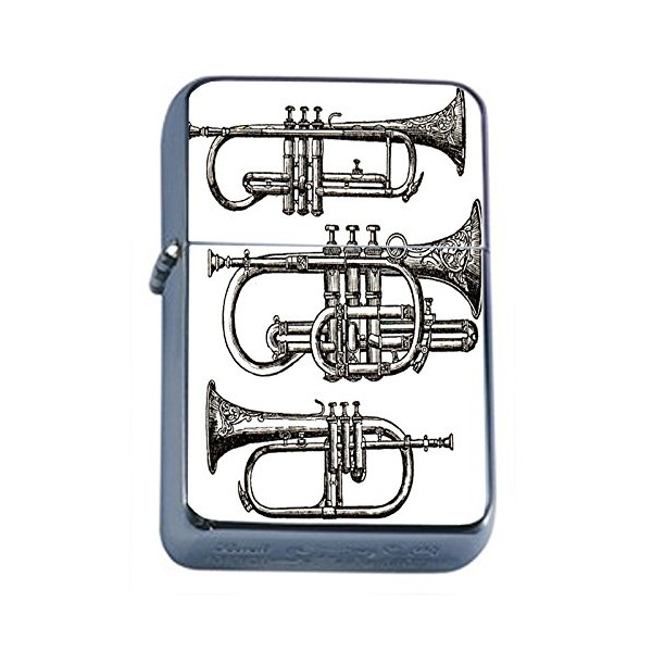 Perfection In Style Silver Flip Top Oil Lighter Vintage Musical Instruments Design 001