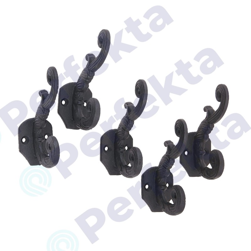 Perfekta (Pack of 5 Retro Cast Iron Hooks Rustic Black Heavy Duty Ancient Era...