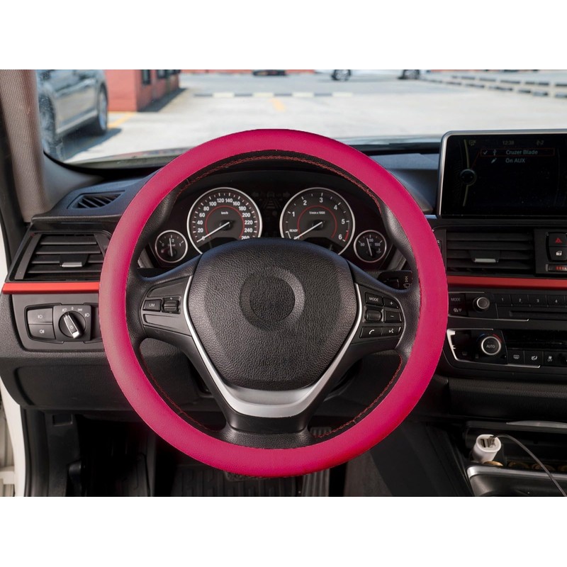 Perflex Universal Silicone Steering Wheel Cover, Fits Steering Wheels with 14 to 23 Inches in Diameter, Leather Car Accessory Anti-Slip Lining (Hot Pink)