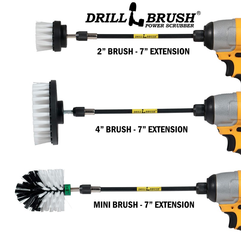- Seis (6) piezas incluye una variedad de tamaño y el lavado de forma, fregar, y los cepillos que detallan. Una extensión de siete (7) de pulgada de largo alcance se incluye que funciona con todos los cepillos de perforación. Nuestros cepillos blancos tienen cerdas suaves para la limpieza de cero libre y fregado. Todas cuentan con ejes de acero de gran resistencia con un accesorio de cambio rápido de un cuarto de pulgada para un cambio rápido de componentes.