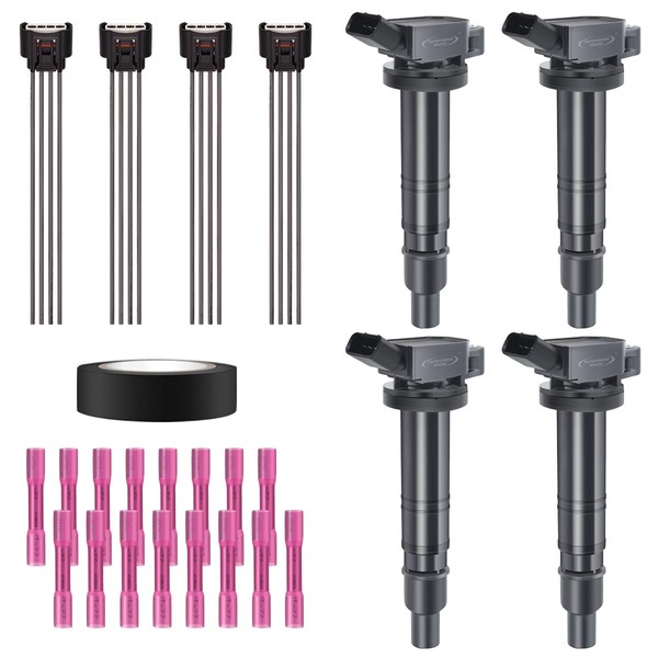 - [Product Information] - Kit of 4 ignition coils is configured with 4 pcs harnesses belonging to it. 20 AWG is in accordance with the specified wire gauge requirements. At the same time, 16 pcs heats shrinkable tubes and a roll of insulating tape can be used conveniently.