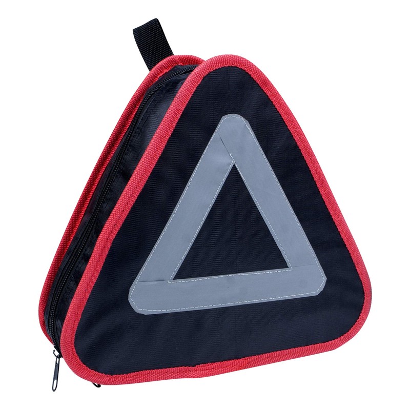 - Zippered storage case with integrated reflective triangle