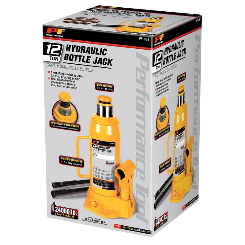 Performance Tool W1632 12 Ton (24,000 lbs.) Heavy Duty Hydraulic Bottle Jack
