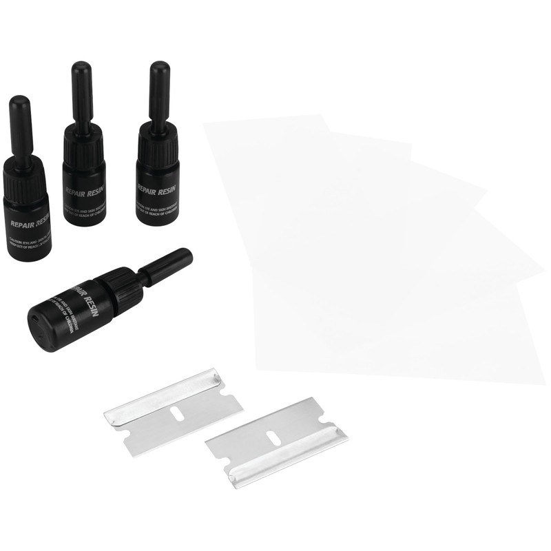 - Complete repairs in a shaded area with the windshield temperatures between 60°F and 90°F (15°C to 32°C). Included: Advanced resin repair fluid 2.5 ml (4), Curing strips (10), Razor blades (2)