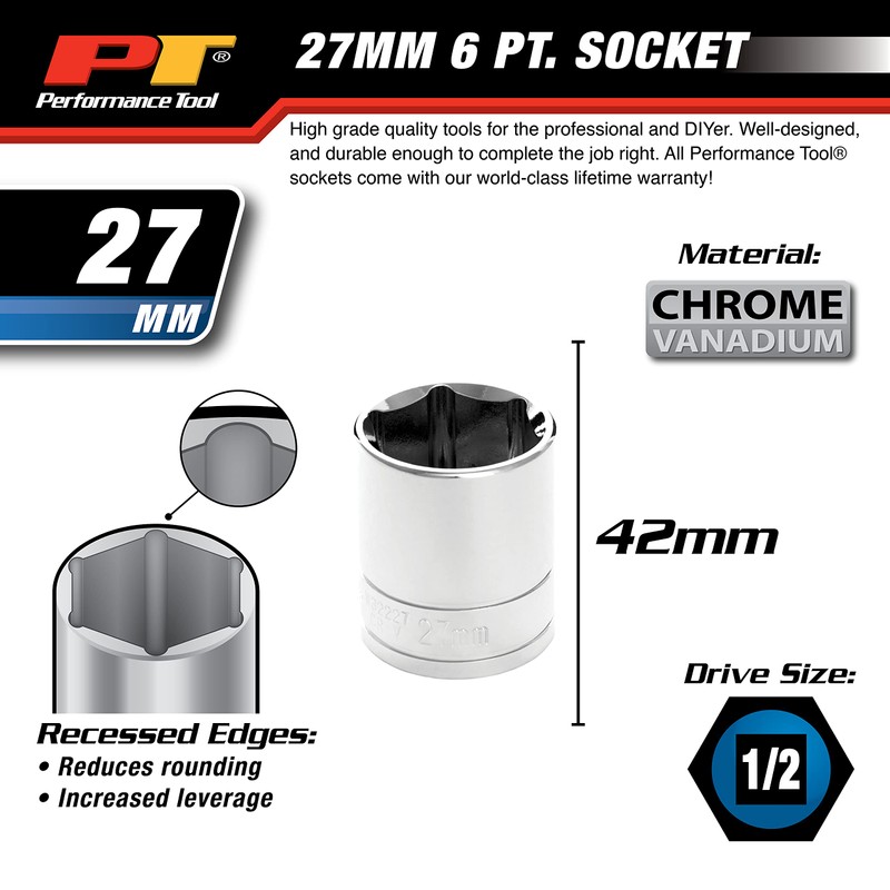 Performance Tool W32227 Size: 1/2 Dr 27mm 6pt Socket