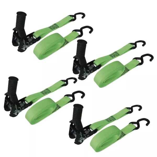 Performax 4 Pack 12' x 1" Green Ratchet Straps Tie Down Pistol Grip S Hook Truck Cargo