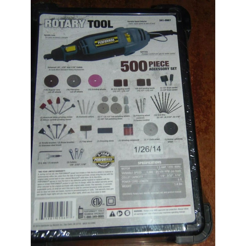 PERFORMAX ROTARY TOOL WITH 500 PIECE ACCESSORY SET(2-PO-135)