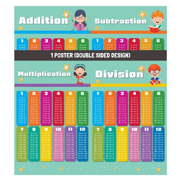 - Double-Sided Design: Covers addition, subtraction, multiplication, and division on one easy-to-use poster.