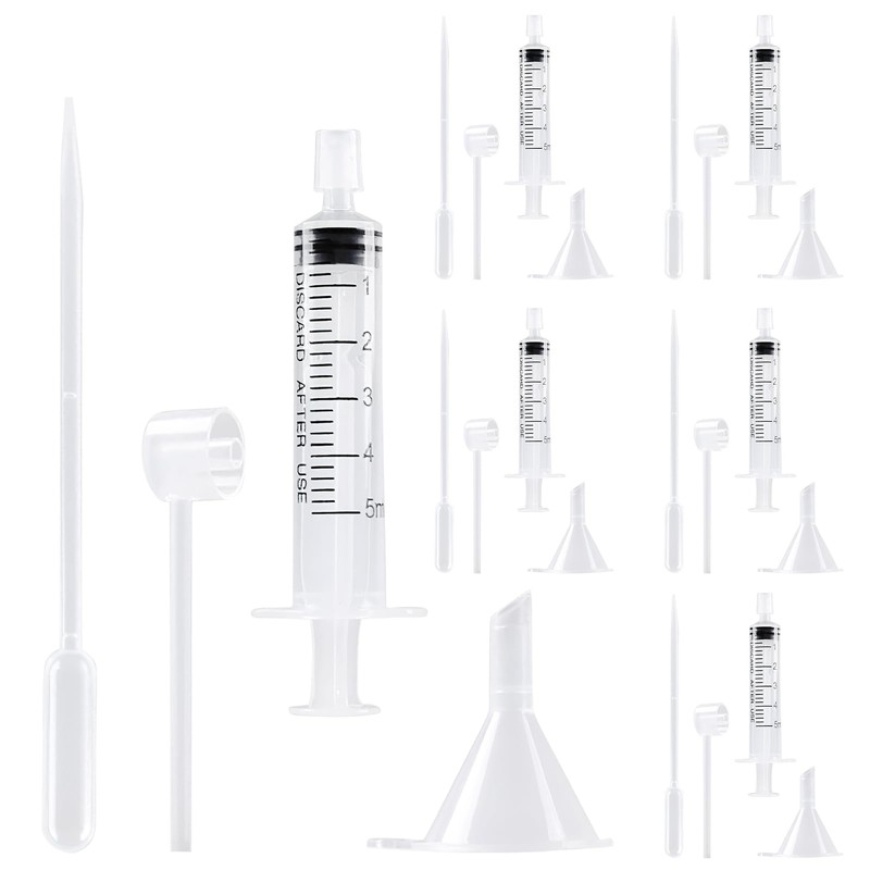 - Complete Perfume Refill Kit: Our set includes funnels (1.2x1.5in/3x3.8cm with 7mm hole), droppers (0.6x2.5in/1.6x6.3cm), replacement pumps (2.3in/5.9cm long), and syringes (5ml capacity, 0.3x0.6x3.5in/0.7x1.5x8.8cm). This comprehensive kit meets all your perfume and liquid transfer needs efficiently and precisely
