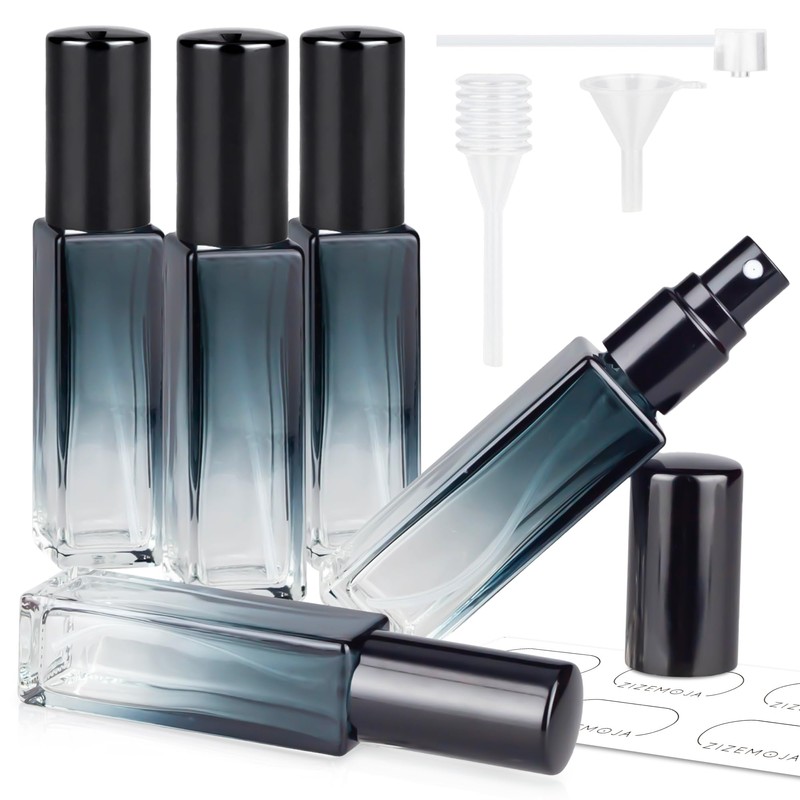 Perfume Refill Bottle, Mini Leak-proof Portable Perfume Travel Refillable Dispenser, 5pcs 10ml Empty Atomizer Sprayer, Pocket Glass Bottle with Funnel and Pipette for Cologne (Gradientblue Black)