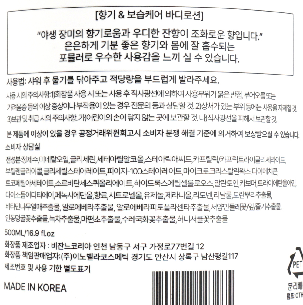 퍼퓸 향기 보습 바디로션 장미 500ml