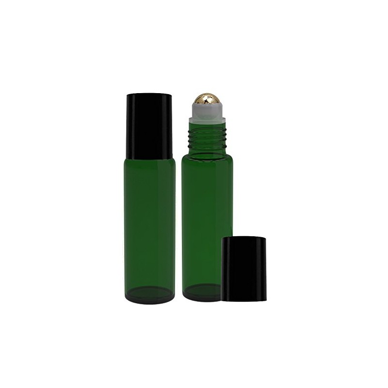 Perfume Studio® Set of Emerald Green Glass Roll Ons with Metal Ball Applicators- Ideal for Essential Oil - 10.4 ml (9, Black Cap)