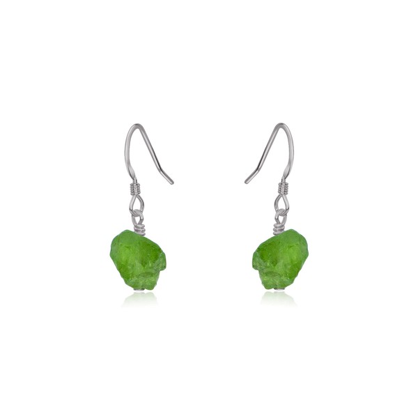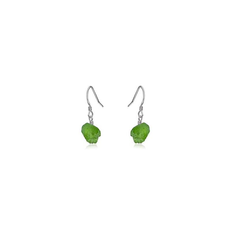 They feature raw, genuine peridot crystals that dangle from the ear wires.