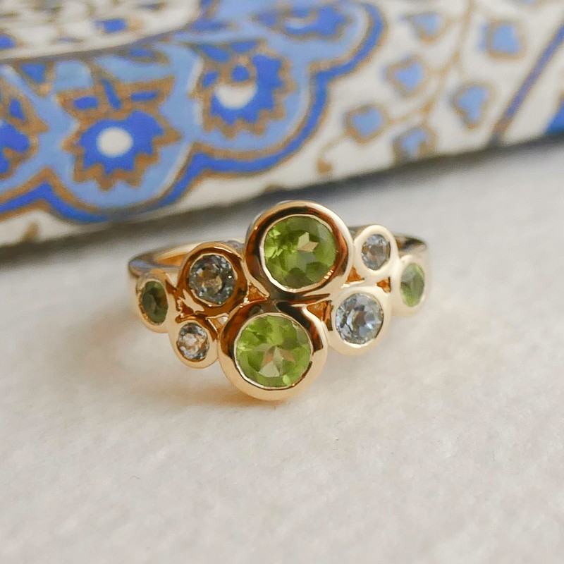Peridot und blautopas Edelstein Cocktail Vergoldet Sterling Silber ring (US Size 6 / Diameter 16.5)