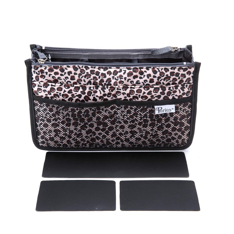 Periea 'Chelsy' Premium Handbag Organiser Insert: Structured Travel Pouch for Tote Bag, Purse Insert for Efficient Bag Organisation - Medium, Leopard Gold