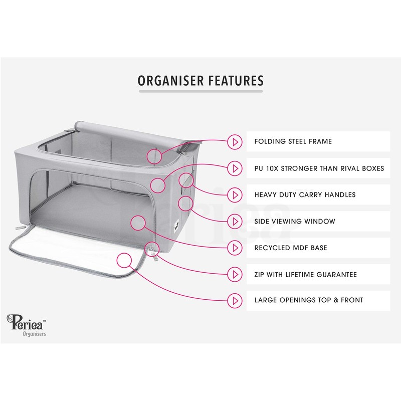 - Periea are world leaders for storage and organizational products, we have 10 years of experience helping our customers organize their homes and handbags.