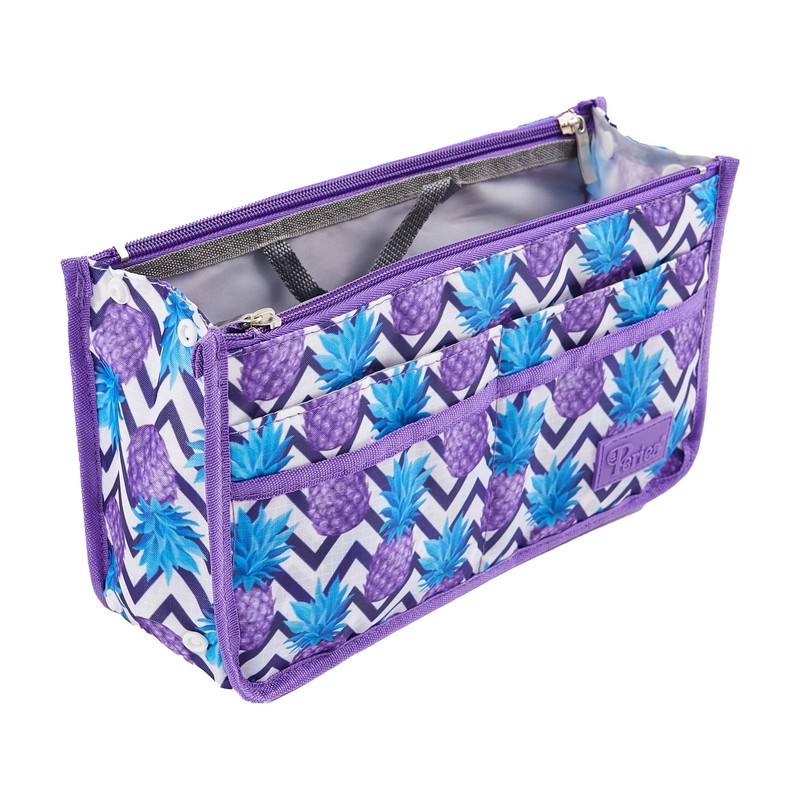 Periea Signature Purse Organizer Insert with Handles & 13 Pockets - 3 Sizes (Purple Pineapple, Medium)