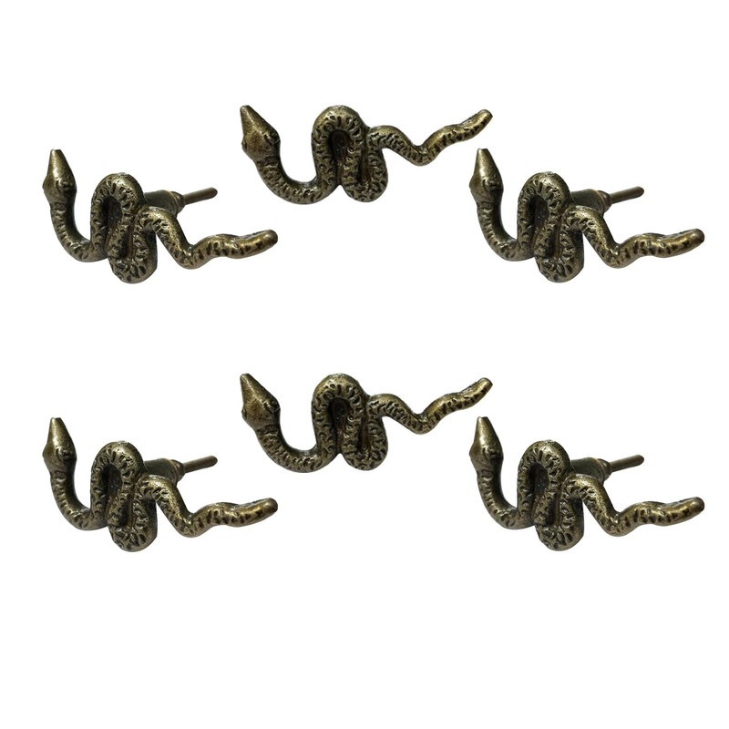Perilla Home Set of 6 Decorative Snake Shape Copper Knobs for Room Kitchen Cabinet Hardware Cupboard Door Knobs Dresser Wardrobe and Drawer Pulls (Antique Gold)