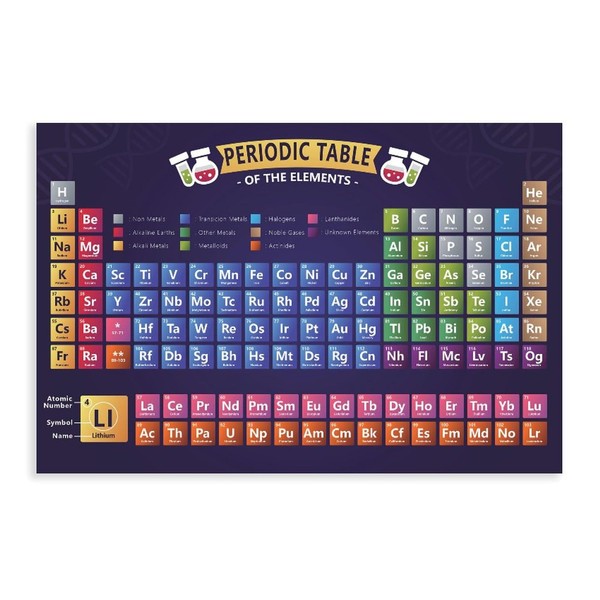 - PREMIUM QUALITY – The poster is made of high-quality canvas, which is waterproof, sun-proof and tear-resistant. The use of high-quality ink combined with the latest printing technology has bright colors, making the periodic table clear, easy to read and durable