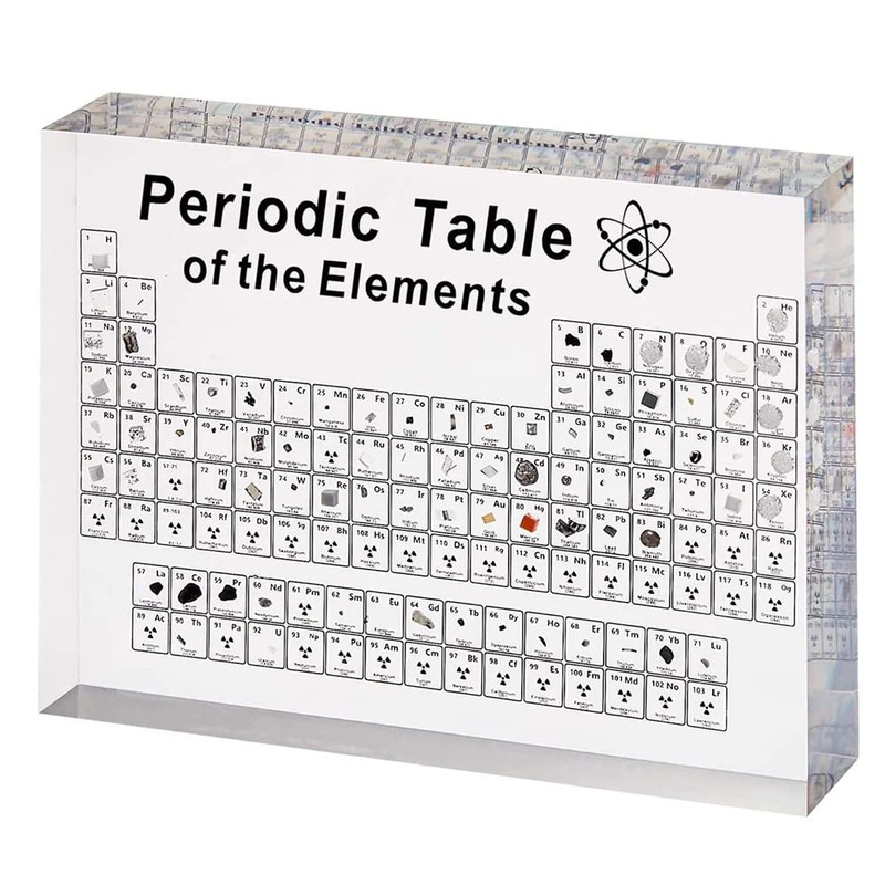 • 【83 Samples of Real Elements】The periodic table of elements embeds samples of real elements in clear acrylic resin, excluding radioactive and hazardous materials. Safe and harmless. Elements can be observed more intuitively.