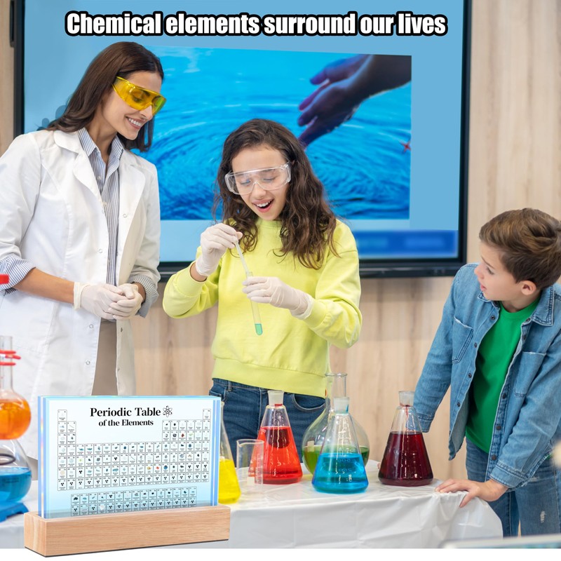 - 【83 Real Elements Inside】The light up periodic table with 83 real elements inside, you can see 3D different shape and colorful real elements clearly. Due to the instability, some elements easily react with each other and easily volatile, we give them a special treatment for safety. And some rare chemical elements have been specially replaced for which are not easy to collect.