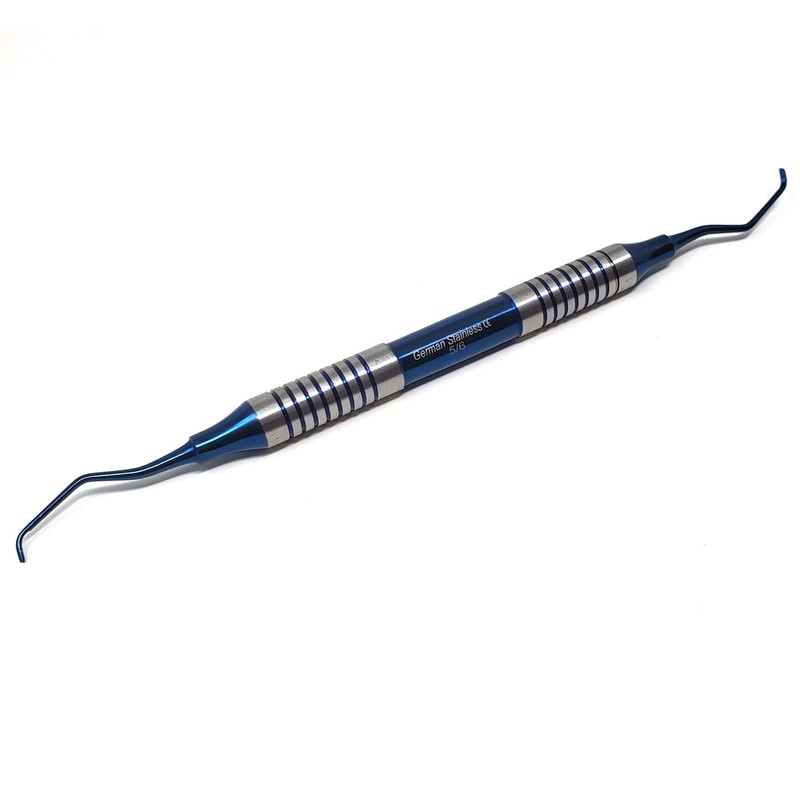 1 Pcs Double Ended Dental Gracey Currete 5/6 Hollow Handle Blue Titanium Coated