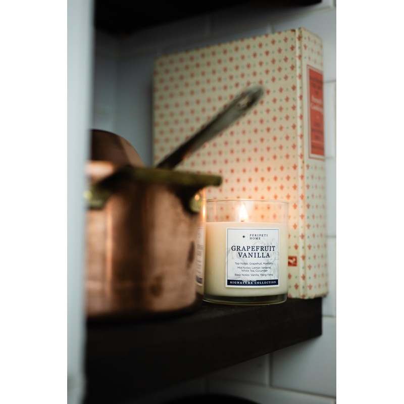 PERIPETI Home Grapefruit + Vanilla Soy Candle - Long-Lasting Scented Candle with Classic Wick for Relaxing Aromatherapy - 8.5oz Natural Wax for Home, Spa, or Gift