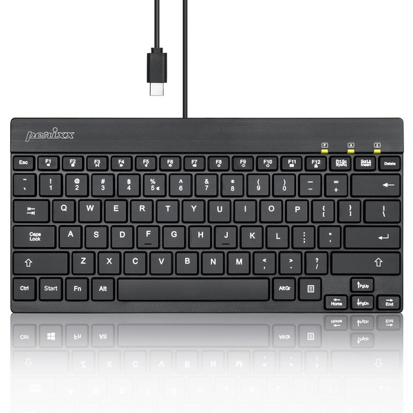 Perixx PERIBOARD-426C Wired Mini Low Profile Keyboard - 10.87x5.43x0.55 inches Dimension - 4.9ft USB C Cable - US English