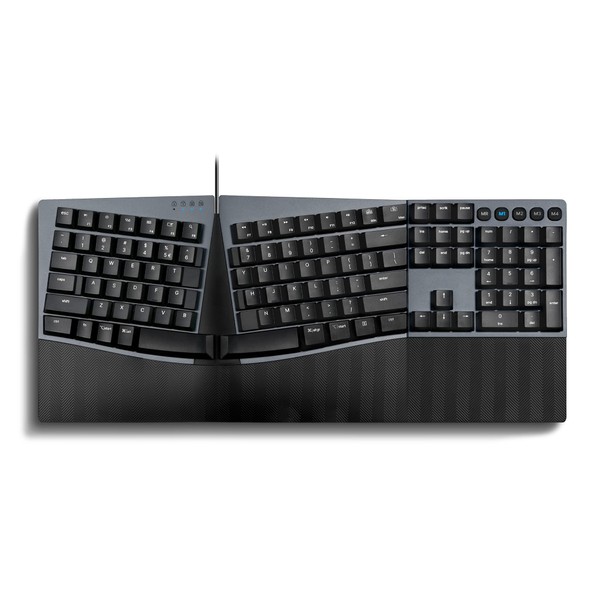• Full-Size Keyboard With Ergonomic Design: Full-size keyboard with a split-key design and curved frame promote a better posture by helping to position the wrist and arms in the most natural typing posture