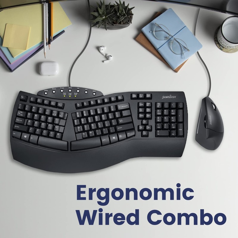 Perixx PERIDUO-512B US, Wired Ergonomic Keyboard and Vertical Mouse Combo - USB - Black - US English