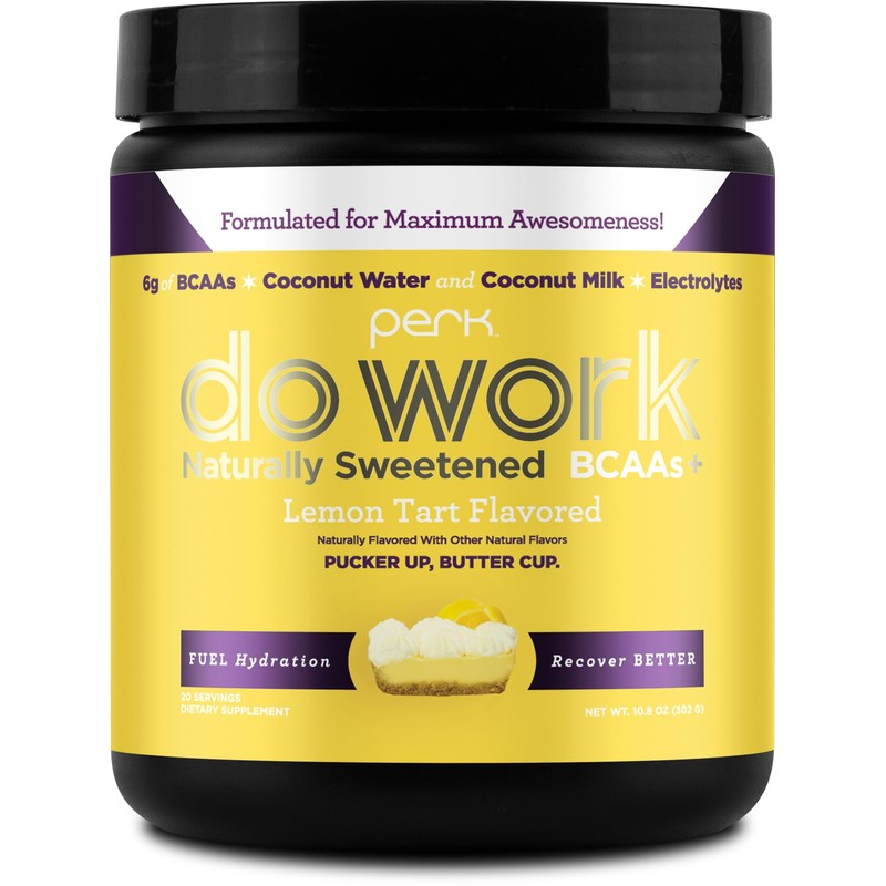Perk Perk Do Work BCAAs + Hydration Electrolytes Powder (Naturally Sweetened Lemon Tart Flavored, 20 Servings) - with Coconut Water & Coconut Milk