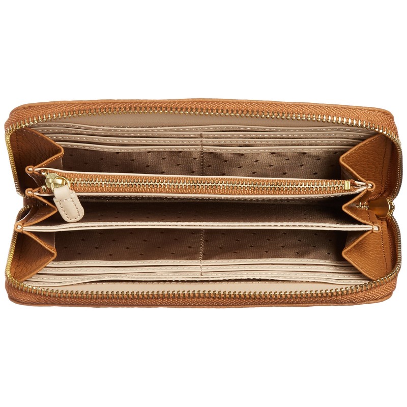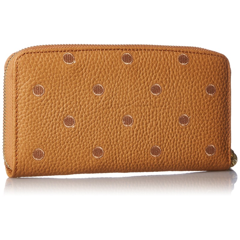 Perke 08-06-02970 Cowhide Dot Embroidery Round Long Wallet, Camel